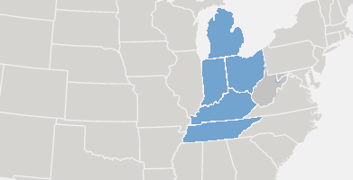 Indiana, Kentucky, Michigan, Ohio, and Tennessee