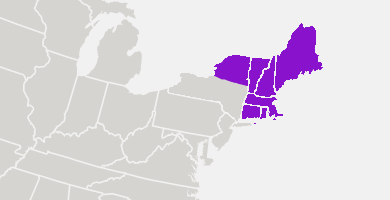 Connecticut, Maine, Massachusetts, New Hampshire, New York, New Jersey, Rhode Island, and Vermont