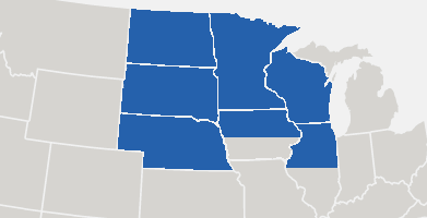 North Dakota, South Dakota, Nebraska, Minnesota, Wisconsin, Northern Iowa, Northern Illinois