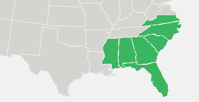 Mississippi, Alabama, Georgia, North Carolina, South Carolina, Florida, Virginia