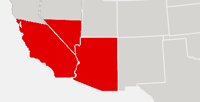 California (South Of Fresno-Monterey), Southern Nevada, Arizona